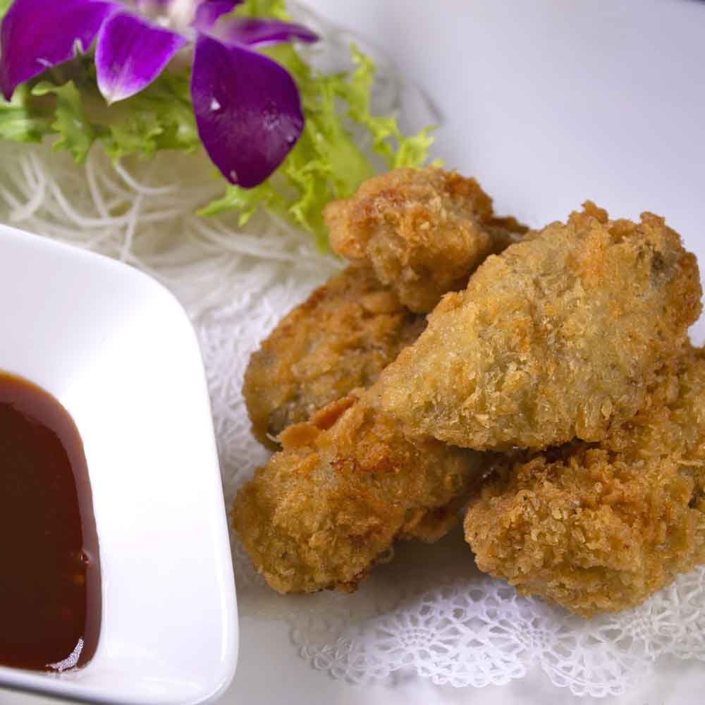 4 piece gently fried, jumbo shrimp, rolled w/Kataifi Noodles w/sweet hot sauce